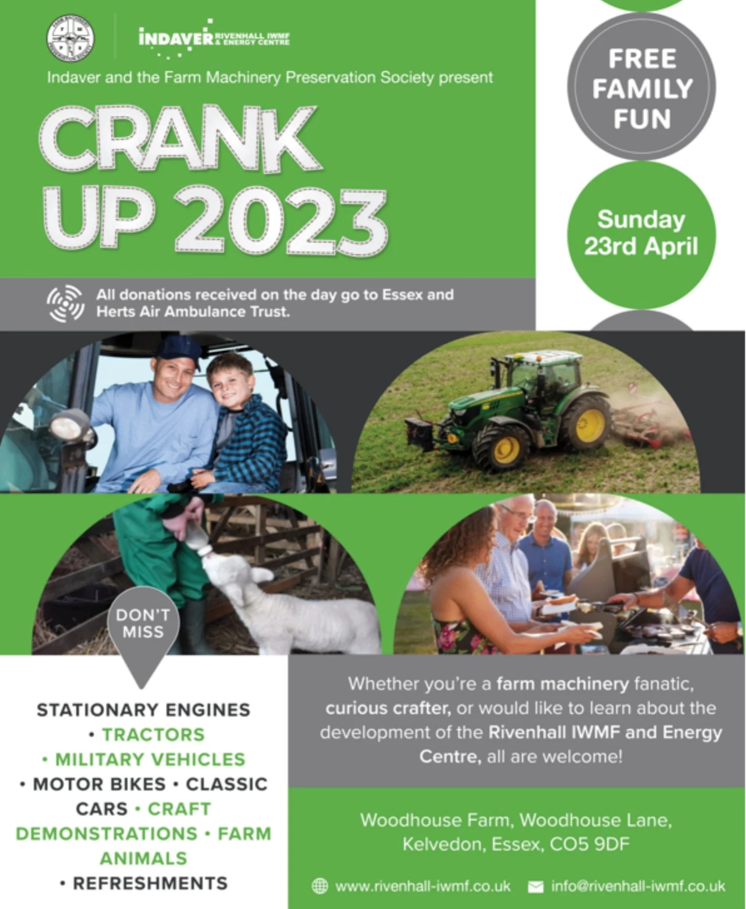 Rivenhall IWMF Supporting the annual Farm Machinery Preservation Society (FMPS) Crank Up Event on St George’s day 2023.